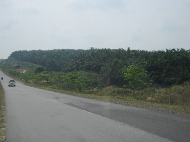 Masih di jalan kota, kiri dan kanan terbentang berhektar-hektar kelapa sawit