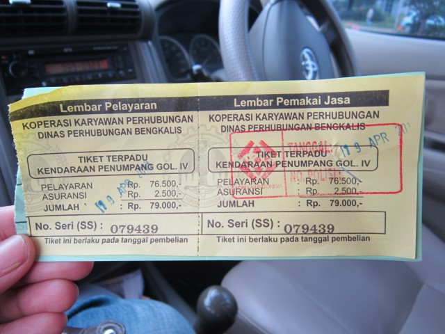 Setelah sarapan dimulailah perjalanan panjang kami menuju Pulau Bengkalis. Untuk menuju Bengkalis, perjalanan darat ini akan memakan waktu sekitar 4 jam menuju Pelabuhan Ro-Ro (Roll On-Roll Off). Dari Pelabuhan, kemudian menyebrangi Selat Malaka untuk mencapai Pulau Bengkalis, kira-kira memakan waktu 1 jam.