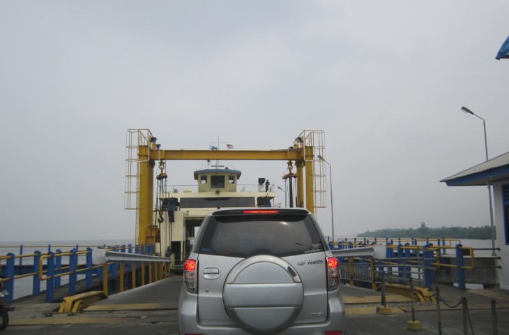 Matahari makin mengarah tepat di atas kepala. Hari makin siang. Mulai laper. Tapi kami masih in the middle of nowhere gini. Mau berhenti makan di mana? Pertimbangan berikutnya, tahan laper aja yang penting cepet sampai. Hati kembali senang ketika papan penunjuk jalan sudah mulai menuliskan “Pelabuhan Ro-Ro”. Pikir kami, pasti sebentar lagi sampai nih. Tapi ternyata papan-papan itu sunguh PHP. Gak sampe-sampeeeee…Mulai boseenn hahahahahahaha…