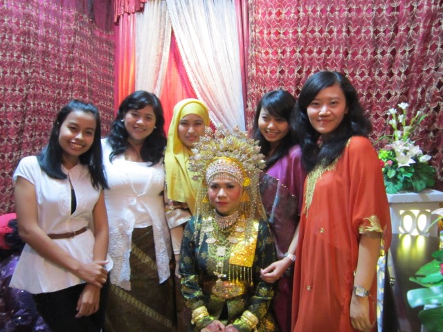 Tepat pukul 19.00 WIB kami dijemput sama Pak Fendi untuk segera menuju lokasi perhelatan acara. Abis isya, Asri akan segera melaksanakan upacara akad nikah. Kami berlima diperlakukan bak tamu VVIP (geer gw, maap ya Asri :P). Tamu mana yang bisa punya akses bebas keluar masuk kamar pengantin dan menyaksikan mempelai cantik sedang dirias. Asri yang sudah cantik, jadi semakin cantik.