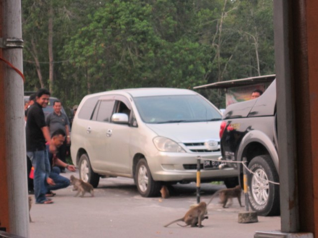 Yang menambah semarak adalah adanya populasi kera disana. Agak takut sih, tapi sepertinya mereka cukup jinak. Terbukti dengan beberapa pengantri ferry yang tidak takut untuk bermain, memberi makan ataupun menyentuh para kera. Kalau kami berlima sih takut hehehehe… Sempet heboh juga karena seekor kera melompat dan mendarat tepat di meja belakang kami. Untungnya ada seorang bapak baik yang membantu mengusir kera tersebut. Fiuuhh…