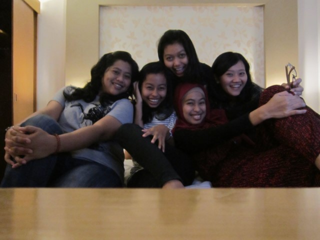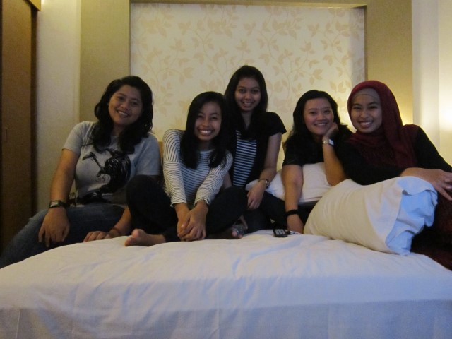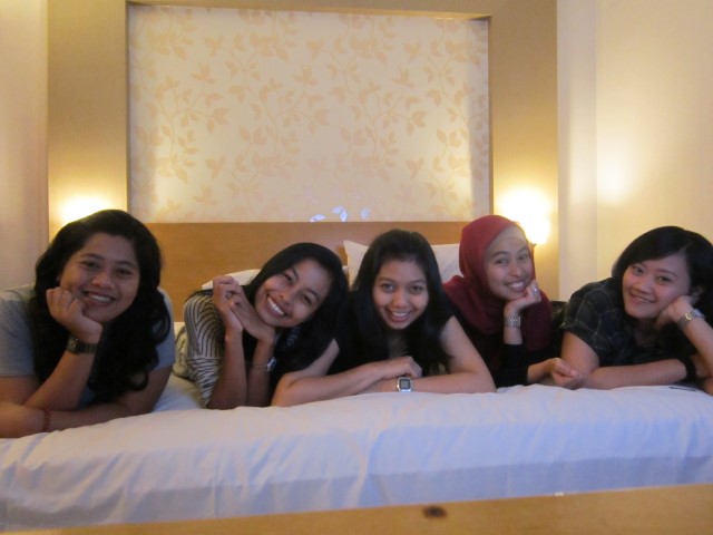 Beruntungnya, karena sudah tengah malam dan baik petugas hotel dan kami para tamu sudah capek, kami akhirnya diizinkan memakai satu kamar biasa (kapasitas 2-3 orang) untuk 5 orang, tanpa charge. Hehehehehhee.. rezekiiii.. 