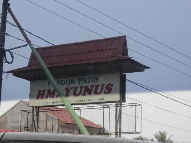 Rumah makan H. Yunus. Di sinilah kami memutuskan untuk makan siang. Pak Fendi bilang, masakan khas rumah makan ini adalah ikan patin. Ikan Patin merupakan makanan khas Pekanbaru. Dan rumah makan ini termasuk yang cukup tersohor dalam penyajian gulai ikan patin. Saya cukup penasaran karena belum pernah mencoba rasa ikan Patin.