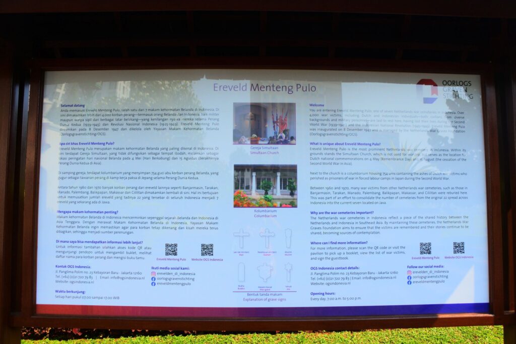 Ereveld Menteng Pulo diresmikan pada 8 Desember 1947 oleh Jenderal Simon Hendrik Spoor. Kelak, S.H. Spoor juga dimakamkan di Ereveld Menteng Pulo. Terdapat 4.000 makam korban perang dari PD II (1939-1945) dan Revolusi Nasional Indonesia (1945-1949). Dalam satu area Ereveld Menteng Pulo, terdapat sebuah bangunan gereja yaitu Gereja Simultan, dan kolumbarium yang menyimpan 754 guci abu korban perang. Seluruh makam kehormatan Belanda di pulau Jawa ini dikelola oleh Yayasan Makam Kehormatan Belanda atau Oorlogsgravenstitching (OGS). Tak hanya di Indonesia, OGS juga mengelola 50.000 makam Belanda korban perang di seluruh dunia.