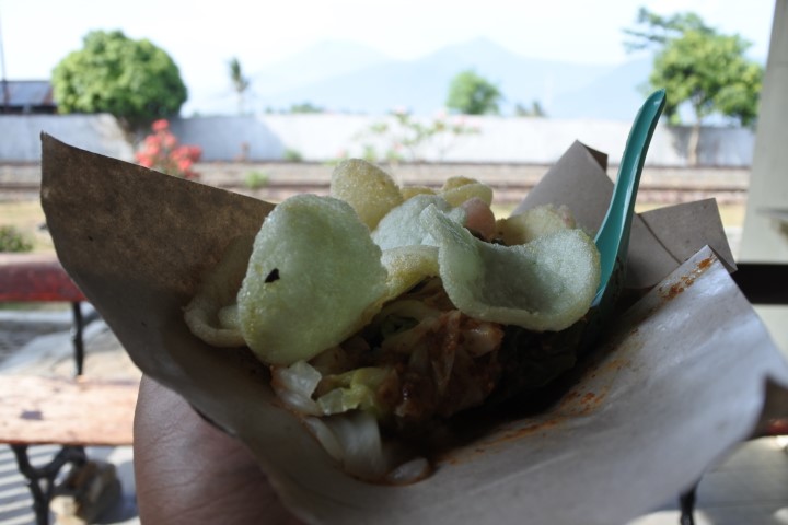 Sementara jam masih menunjukkan pukul 8.30, kami masih punya waktu 1,5 jam menunggu. Hmmmm… mau ngapain yaaa? Akhirnya kami foto-foto sambil makan pecel hahahahhahahahahaha… Oiya, pecel di sini sumpah enaaaaakkkk banget… Sayurnye seger, krenyes-krenyes gitu, bumbu pecelnya juga rasanya enak loh. Padahal itu pecel-pecel pinggir jalan. Belinya juga lewat pager hahahahaha… Seporsinya Rp 10.000 udah pake nasi sama bakwan.