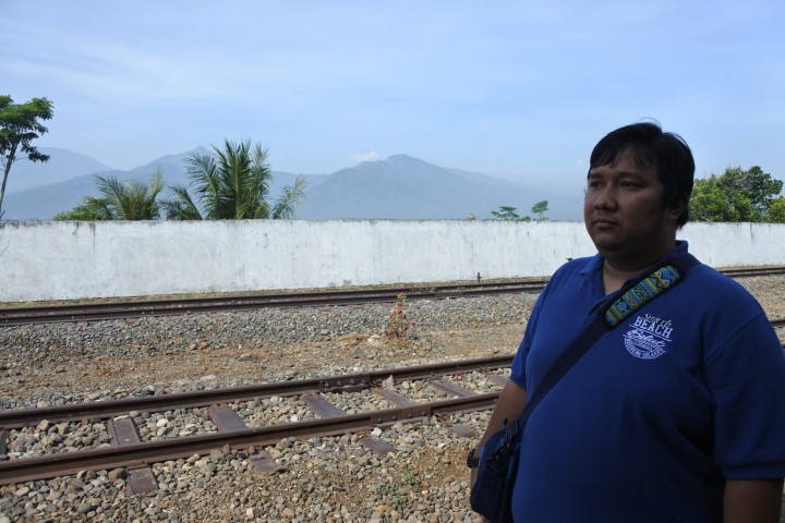 Itu rel kereta yang kami lewati. Pemandangannya pegunungan, sejukkkk….